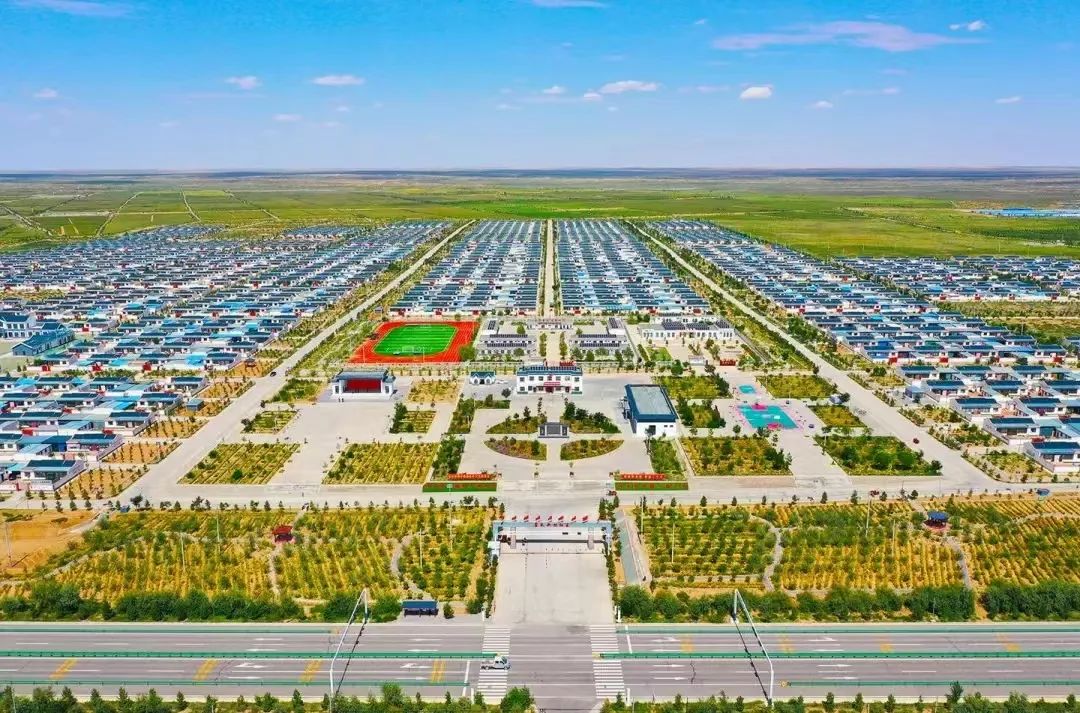 村支书向同学们讲解道:“我们这里,以前就是个大山里的‘穷窝窝’,10年前,我们这里的群众还住在山大沟深的南部山区,那里干旱少雨,交通也不便,群众生活非常苦,也确实特别穷!但是从2012年古浪县开始实施黄花滩生态移民易地扶贫搬迁工程开始,我们这里的日子就逐渐好起来了!”