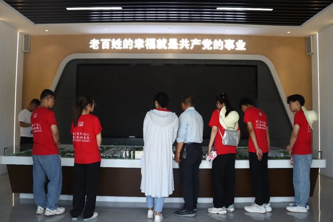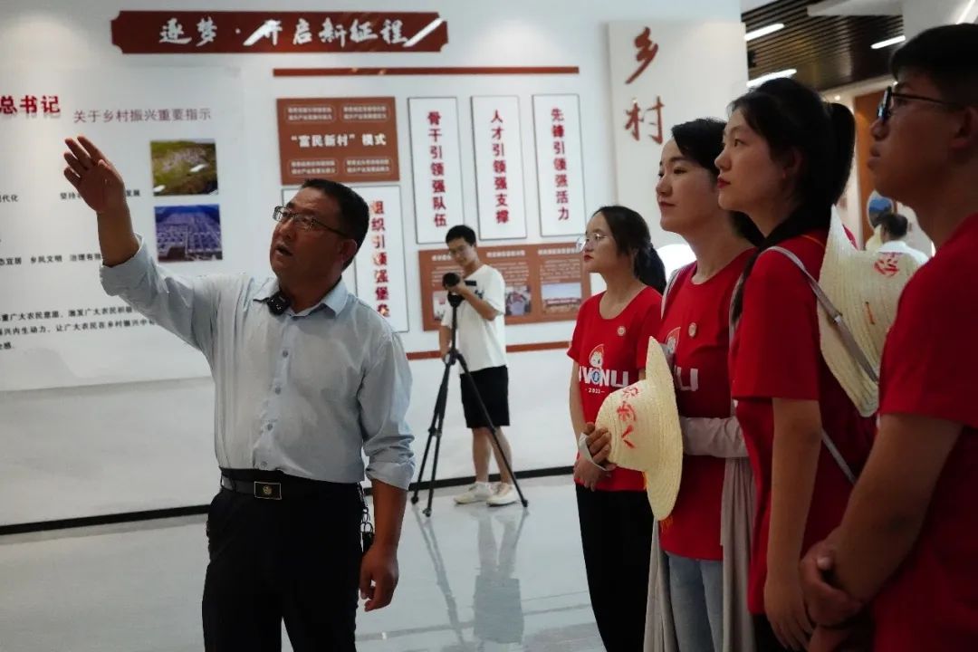 2019年8月21日,习近平总书记来到富民新村视察时强调,党的一切工作都是为老百姓的利益着想,让老百姓幸福就是共产党的事业。正是因牢记着习近平总书记的嘱托,富民新村全体村民感恩奋进、埋头苦干,乡村美、产业兴、农民富的乡村振兴新图景正在这里铺展开来,富民新村的富民路也越走越宽!在富民新村党总支书记兼村委会主任张延堂的带领下,老师同学们参观了干城乡新时代文明实践所。