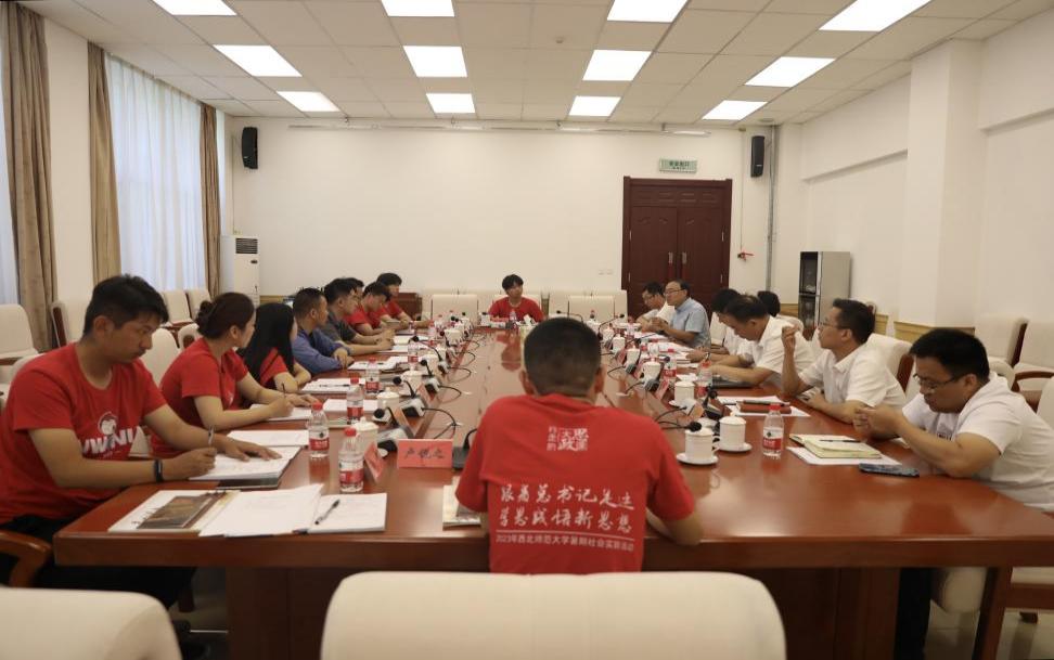 2023年7月22日,bv伟德国际1946“跟着总书记足迹,学思践悟新思想”暑期社会实践调研团走进嘉峪关市委机关参加座谈会,会议由嘉峪关市委政研室主任、2020级博士研究生杨殿锋主持。