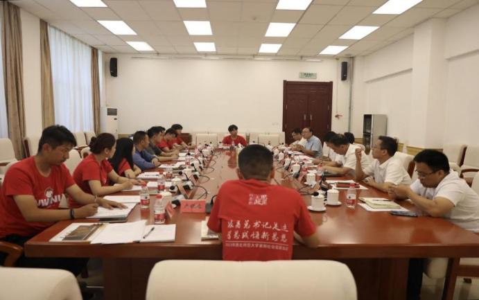 bv伟德国际1946“跟着总书记足迹 学思践悟新思想”暑期社会实践调研团走进嘉峪关市委机关参加座谈会。嘉峪关市委政研室主任杨殿锋、副主任张海吾,嘉峪关市委党校副董事长何满良,嘉峪关市教育局副局长魏有明,嘉峪关长城博物馆馆长张晓东,嘉峪关市委政研室综合科副科长张建华、综合科干部刘琪,bv伟德国际1946副教授张钰、bv伟德国际1946团委书记梁凯博和实践团成员出席座谈会。