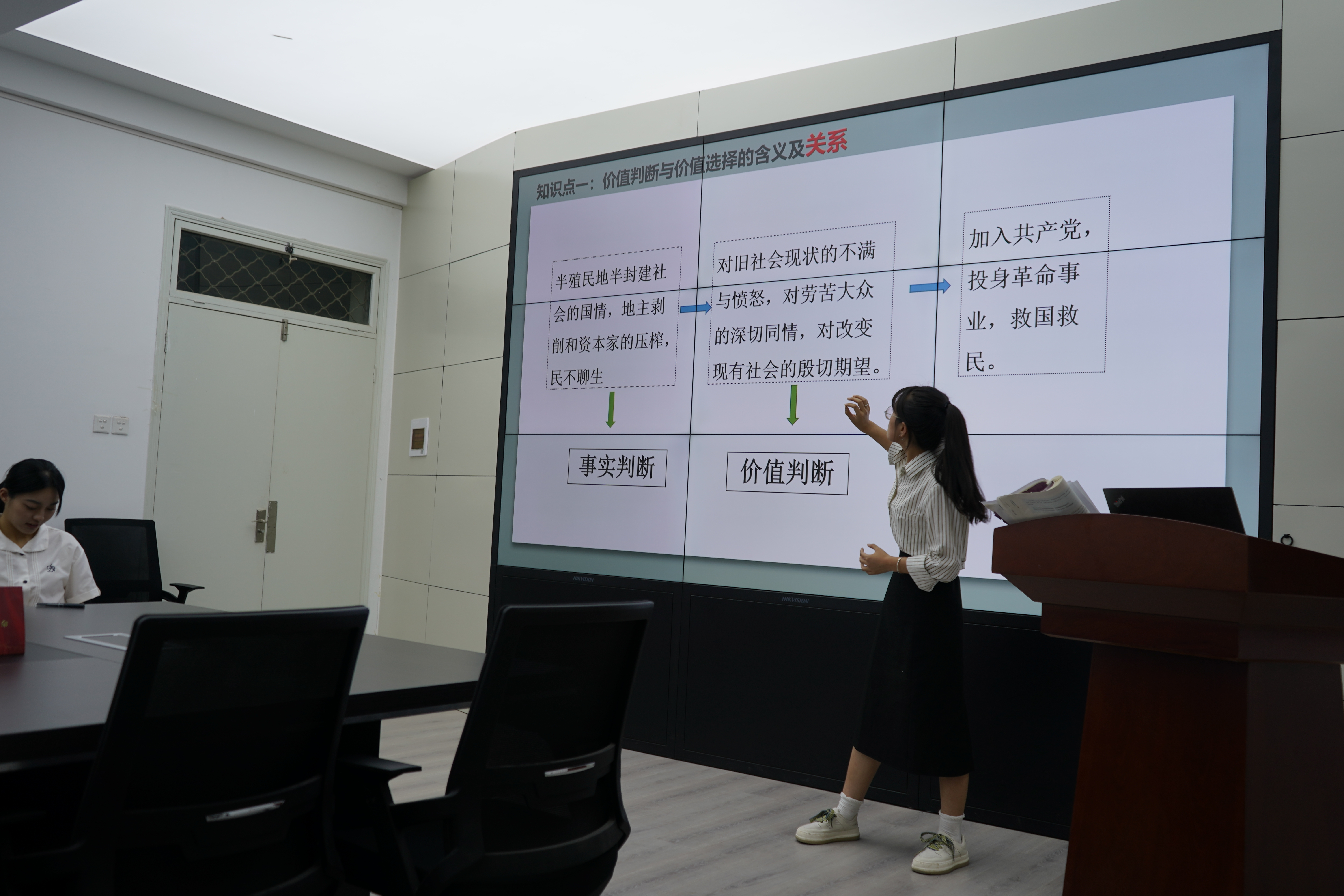 本次比赛由来自公司2020级、2021级思想政治教育专业的8名参赛选手开展角逐。比赛现场,选手们根据自己选取的教学内容,从教学展示、即兴演讲和教学反思三个方面进行了全方位、多维度、深层次的“全面展示”,呈现了一堂堂精彩的思政课,赢得了评委老师及在场同学的热烈掌声。