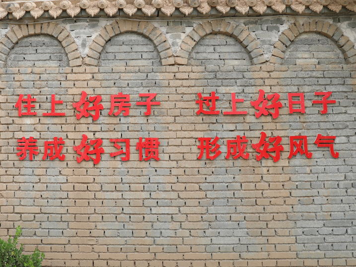 苍耳王村甚至有八十岁高龄的老人在文化墙上留下了自己潇洒飘逸的字迹。充分体现了群众积极参与文化振兴的热情,此外,苍耳王村的村民热情地向我们诉说六峰镇的变化,干净整洁的水泥巷道、崭新的文化墙格外夺目,提到这些变化,村民都赞不绝口。谱写了乡村振兴新篇章。