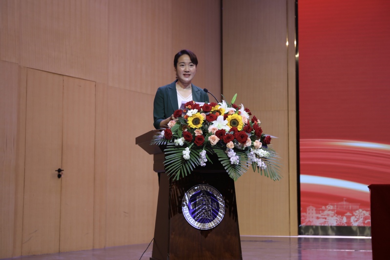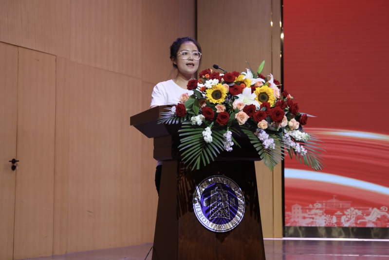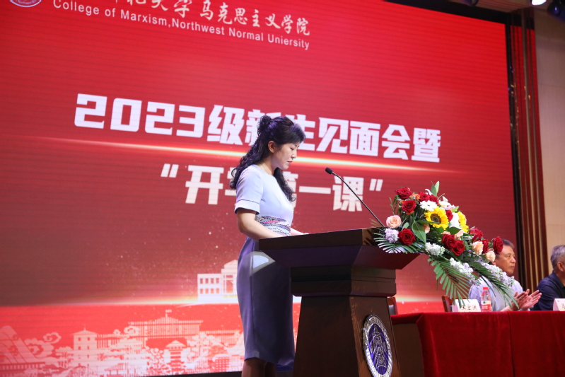 2023级硕士研究生新生代表张婷发言。她鼓励同学们做“在马信马”的马克思主义坚定信仰者,树立坚定的政治信仰,做“在马学马”的踏实求学者,做“在马行马”的马克思主义践行者,在青春的赛道上跑出马院学子最好的成绩。