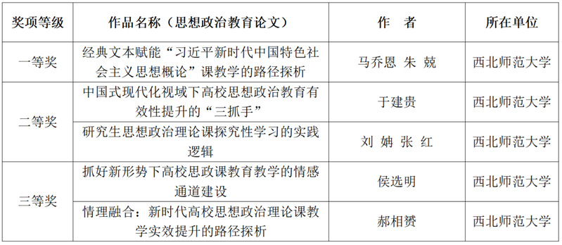 据悉,此次活动经甘肃省各县、市教育行政部门等单位两级评审后,省委教育工委组织专家组终审,共评出优秀作品230件,其中“大思政课”62件、思想政治教育论文132篇、思想政治教育典型案例36篇。这些成果的展示,极大丰富了公司组织开展思想政治教育活动的素材、方式和载体,对于全面落实立德树人根本任务、强化“大思政课”建设、构建大中小学思政课一体化等提供了丰富的理论与实践资源。