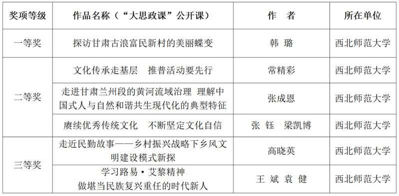 9月28日,中共甘肃省委教育工作委员会公布了此次活动的评选结果,公司共有17件作品获奖,bv伟德国际1946获奖作品11项。其中,“大思政课”公开课获评6项(一等奖1项,二等奖3项,三等奖2项);“思想政治教育论文”获评5项(一等奖1项,二等奖2项,三等奖2项)。具体获奖情况如下: