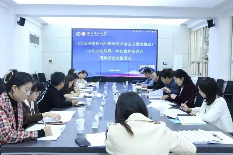 此次会议共有三个议程:一是文件学习。与会人员共同学习并讨论了《教育部办公厅关于开展第三届全国高校思想政治理论课教学展示活动的通知》(教社科厅函〔2023〕25号),系统梳理了大中小学思政课统编教材一以贯之的重点内容,并就各学段育人目标、教学理念的一致性和内容衔接的科学性进行了深入讨论。