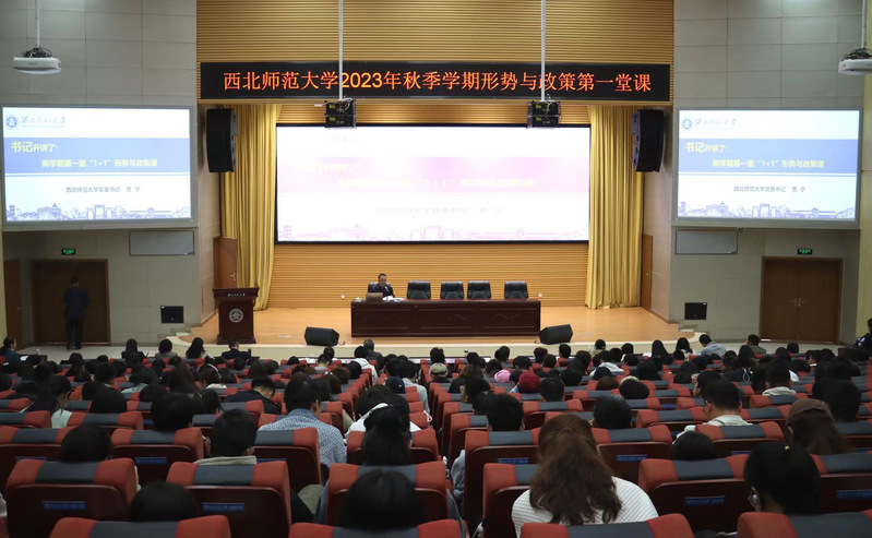 10月14日上午,伟德国际1946官方网站党委书记贾宁在毅然报告厅为师生讲授2023年秋季学期“形势与政策”第一堂课。bv伟德国际1946、数学与统计公司领导班子成员、教师代表及辅导员等一同听课。