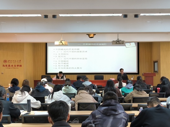 曹亚斌教授作了题为《世界眼中的中国崛起与中国当前的国际环境》的报告。首先,曹老师通过大量的图表分析,对世界眼中的中国崛起进行了全景式总结,指出当前中国的国际影响力不断提升这一总体趋势,但认知上存在国别与区域的差异。其次,曹老师分别从中美关系、周边外交以及认知差异等方面详细介绍了目前中国面临的国际环境。最后,曹老师从化解安全困境、充分认清中美关系的现实、坚持走和平发展道路以及利用不对称优势四个方面回答了“怎么办”的问题。