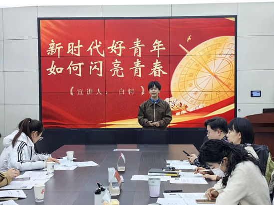 活动第一项,曹国强同学对新时代老员工理论宣讲团成立的历史背景和近年来取得的成就进行了回顾,并详细介绍了此次活动的评选标准,阐明了新时代老员工理论宣讲团设置的岗位及其相应的职责。