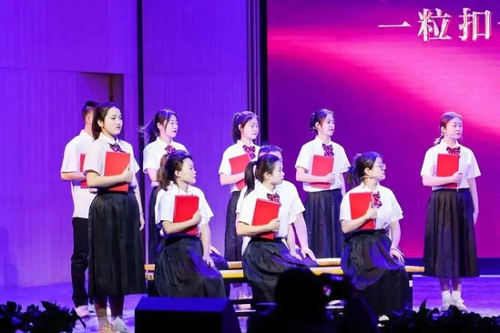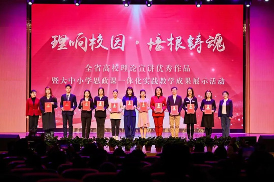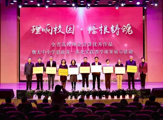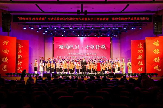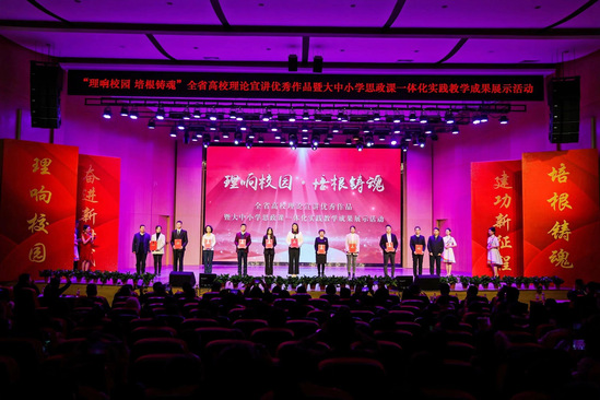 在“理响校园·培根铸魂”全省高校理论宣讲优秀作品暨大中小学思政课一体化实践教学成果现场展示活动中,公司张成恩、李莹洁老师主演的理论宣讲报告《沿着总书记足迹 学思践悟新思想》以及高晓英、朱荣康老师主演的情景思政课《我们》受邀进行现场展示。两部作品分别讲述了新时代十年发生在甘肃大地上的伟大变革以及黄河之滨的美好新生活,发出“强国一代有我在”的奋进之声,充分展现出公司青年教师的创新能力和综合素质。现场演出将一场场生动、深刻的“思政课堂”带上舞台,真正做到培根铸魂,启智润心,获得了全场观众的肯定和掌声。