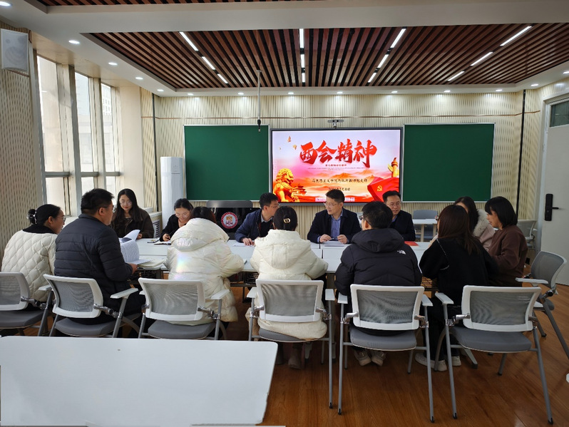 为推进“两会”精神融入课堂教学,聚焦“两会”热点话题,围绕“两会”专题怎样纳入课堂进行集体备课,以使得员工的理论学习更贴合实际、贴合生活,也让“两会”精神更加入脑入心。马克思主义中国化研究所教师党支部书记王树亮介绍马克思主义中国化研究所教师党支部基本情况,并希望全体党员教师在自己的岗位上创新开展工作,为公司发展贡献力量。
