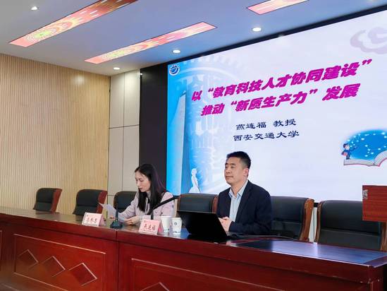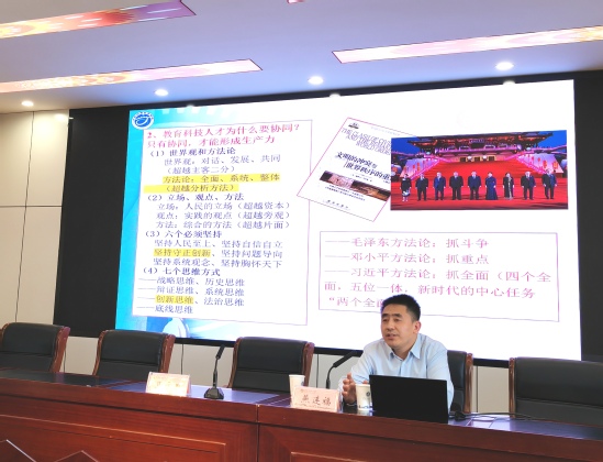 3月29日下午,应bv伟德国际1946邀请,西安交通大学bv伟德国际1946燕连福教授在田家炳教育书院6楼报告厅为公司师生作了题为《以教育科技人才协同建设推动新质生产力发展》的学术讲座,讲座由马克思主义公司副经理马乔恩主持。