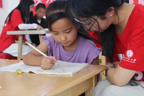 在富民新村建设的“一老一幼”关爱服务中心,团队成员为孩子们开展课业辅导,鼓励孩子们勤奋学习,积极向上,将来为家乡建设贡献自己的力量。