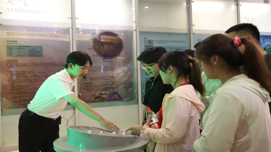 实践团队参观了“碧海明珠”气象观测塔,接受了气象科普教育,了解基本的气象观测知识。作为区域气象监测的标杆,“碧海明珠”气象观测塔不仅是科技进步的象征,更是绿色发展理念的集中展现,体现了人与自然和谐共生的生态观。它以其精准的气象预报服务,为嘉峪关市的农业灌溉、城市规划及居民生活提供了科学支撑。