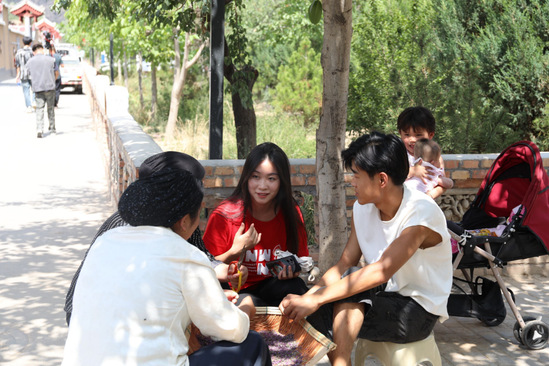 用劳动创造幸福,用奋斗书写华章。团队成员与当地党员干部进行深入交流,切实感受到了布楞沟村的今昔巨变。过去的布楞沟村干旱缺水,交通闭塞,产业匮乏,如今,布楞沟村旧貌换新颜:基础设施完善,产业发展兴旺,教育事业稳步推进,“三治”融合协调发展。团队成员们与当地村民展开亲切对话,了解村庄实际情况,同时在访谈过程中结合专业知识向村民们宣传普及铸牢中华民族共同体意识的相关知识。