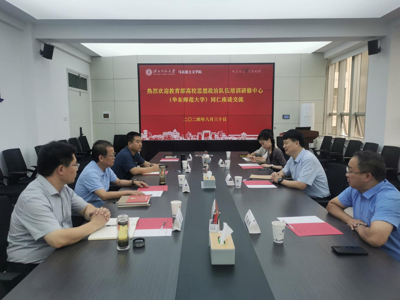 8月30日,教育部高校思想政治工作队伍培训研修中心(华东师范大学)副主任张俊华,华东师范大学bv伟德国际1946副经理速继明,研修中心(华东师范大学)项目主管、bv伟德国际1946团委书记梁靖愉,研修中心(华东师范大学)青年教师魏孔三一行4人来公司座谈交流。