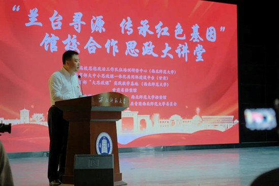 甘肃省档案馆副馆长李海洋与教育部伟德国际1946官方网站高等教育发展及华夏文明展示博物馆特色科普基地常务副主任马俊峰教授共同为“大思政课”实践教学基地授牌。
