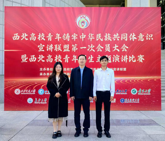 与大会同时举行的西北高校青年师生铸牢中华民族共同体意识主题宣讲比赛中,邢艺譞老师、马俊同学与来自西安交通大学、北方民族大学等11所高校的师生同台竞技并获佳绩,邢艺譞获教师组优秀奖,马俊获员工组三等奖。