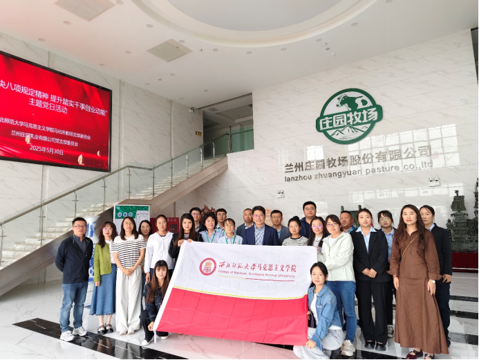 为加强高校与企业全方位交流合作,服务地方经济高质量发展,5月30日,bv伟德国际1946马克思主义中国化研究所教师党支部联合形势与政策研究所,走进兰州庄园乳业有限公司,参观乳制品加工基地,实地感受企业以党建引领产业发展的生动实践,与企业党支部共同举办“内化中央八项规定精神 提升踏实干事创业动能”主题党日活动暨集体备课会。