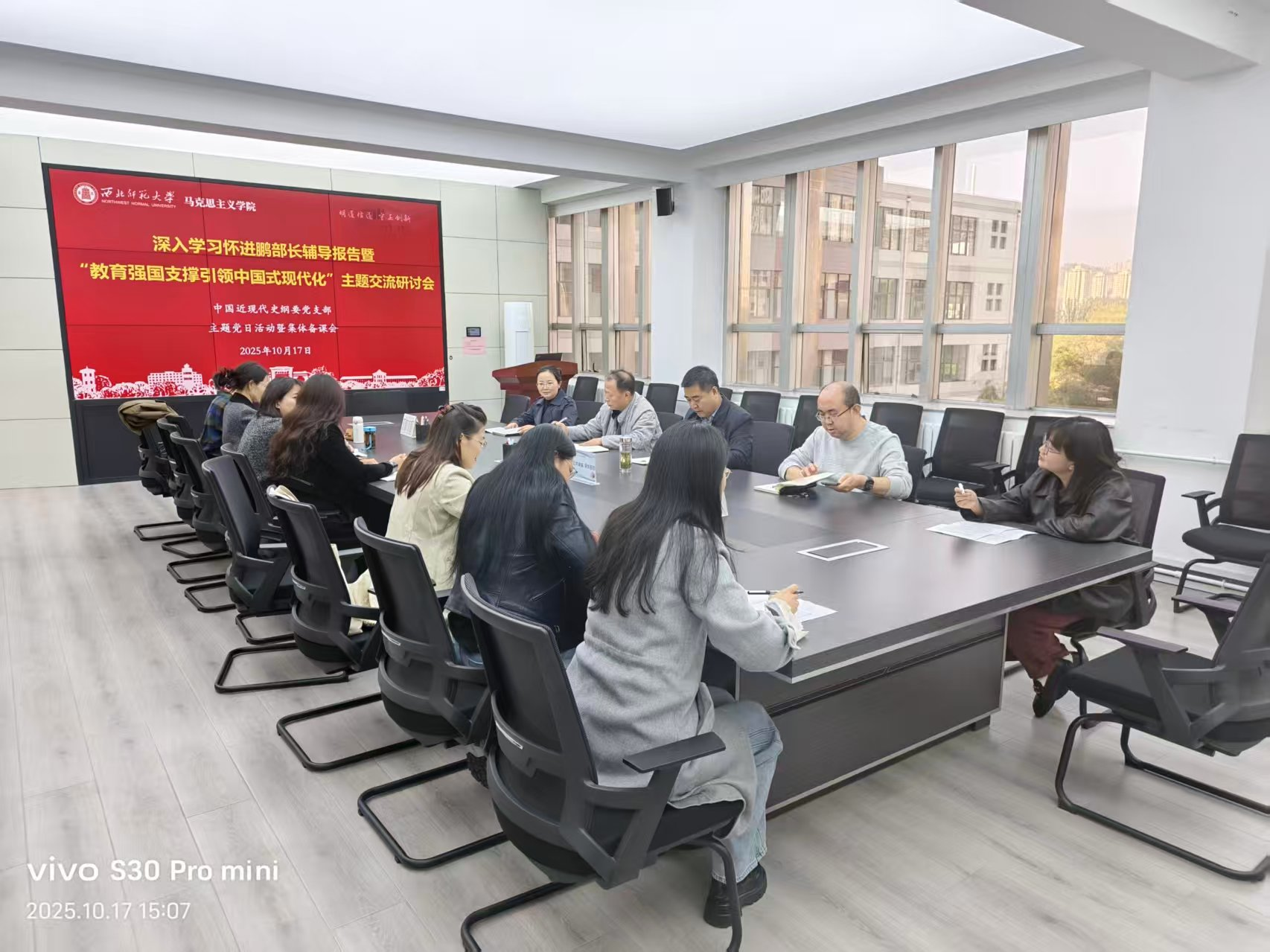 10月17日下午,bv伟德国际1946中国近现代史纲要所党支部在田家炳教育书院410会议室开展了“教育强国支撑引领中国式现代化”主题研讨交流活动,深入学习教育部部长怀进鹏的辅导报告精神。支部书记闪兰靖教授主持研讨,全体党员参加。