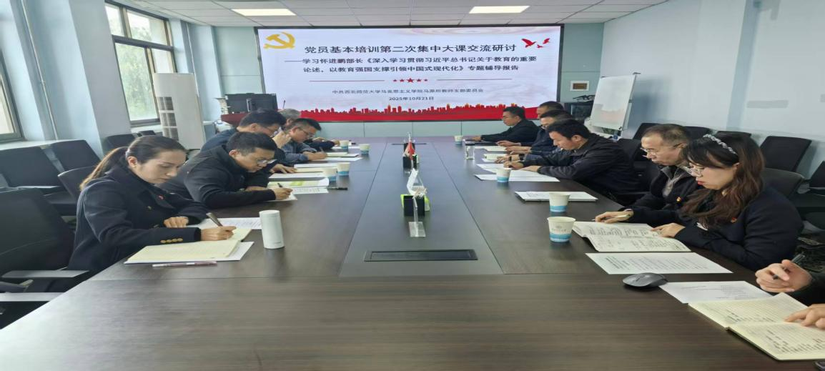 10月21日下午,马原所教师党支部举办了党员基本培训第二次集中大课交流研讨活动,研讨交流怀进鹏部长《深入学习贯彻习近平总书记关于教育的重要论述,以教育强国支撑引领中国式现代化》专题辅导报告学习心得。会议由支部书记郝相赟主持,支部全体党员参会,教育厅相关处室领导和党委组织部副部长常国涛列席会议。